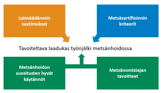 Det finns allmänna kvalitetskrav ochs arbetesslagsvisa kriterieuppsättningar för skogsvårdens kvalitetsstyrning. Bakgrunden för dessa är bland annat lagstiftningen, skogscertieringen och bästa praxis som den beskrivs i rekommendationerna för skogsvård. Också skogsägaren sjäv kan ställa krav på kvaliteten hos utförandet.